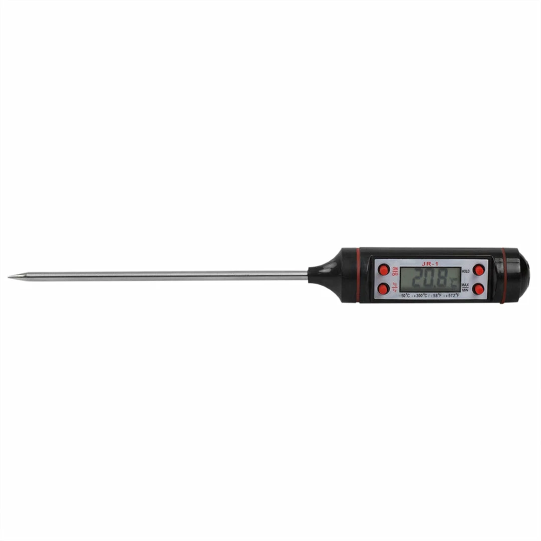 Have peace of mind that you meal is cooked to perfection with this handy digital cooking thermometer! No more having to cut open a whole chicken to check if it’s overcooked inside. Or having to stick a toothpick in a batch of oven-baked brownies to see if it’s thoroughly baked. The LCD display shows accurate temperature results within seconds. The probe measures 7.5″ long so you can reach deep into a thick roast or slab of steak and features a sleek tip that prevents putting huge puncture holes in your cooking. Which means – Seasonings and juices stay in tact. Temperature measurement range is from 58 degrees Fahrenheit to 572 degrees Fahrenheit. (50 degrees Celsius to 300 degrees Celsius). Batteries included.