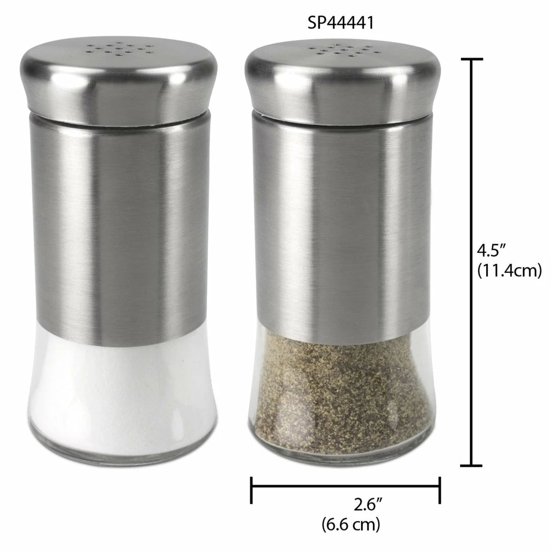 Store your salt & pepper in this 2 piece glass shaker set. Made from high quality stainless steel & glass with steel top. Set includes – 1 salt shaker and 1 pepper shaker. Great for any kitchen setting.