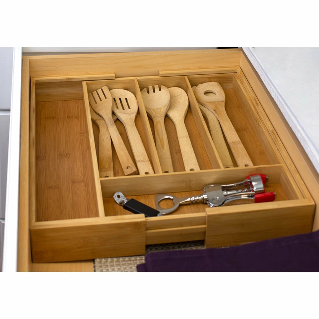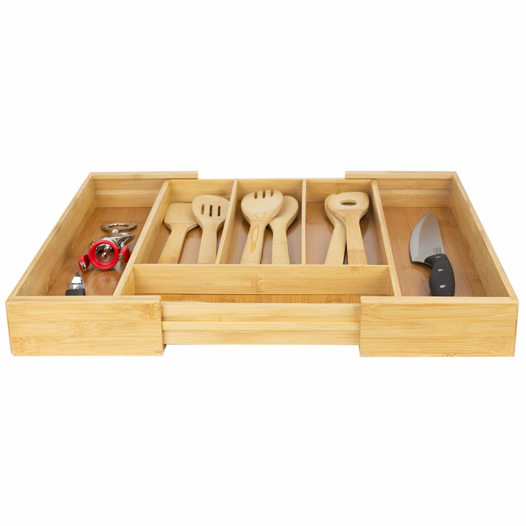 - FULLY EXPANDABLE – The utensil tray expands in width, adding additional storage for your expanding collection of items, odds and ends, supplies, and gadgets.