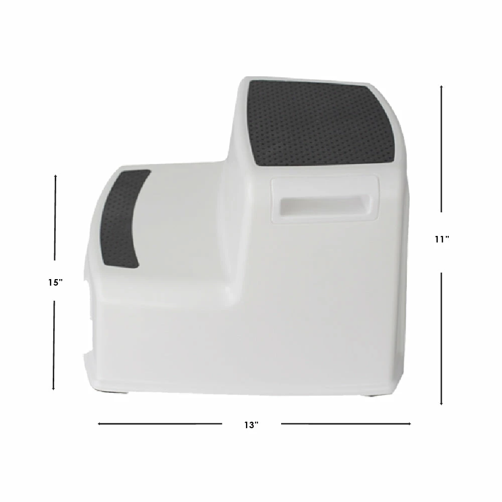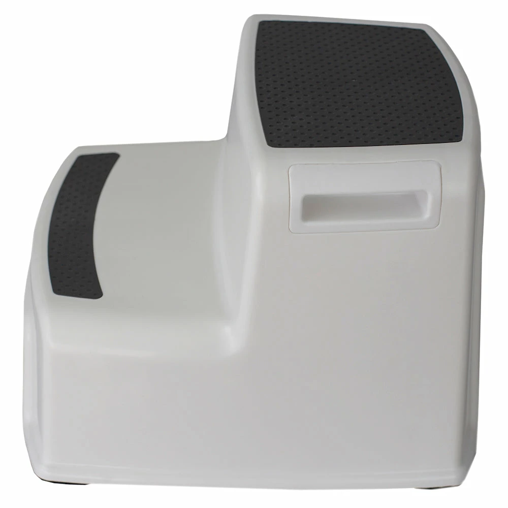 No need to whip out that wobbly chair to grab those hard to reach items. This handy stool gives you the needed boost to get you there no matter what age you are. Grooves along each side allow you to easily lift the step stool and move it from room to room with ease, while the compact shape tucks away neatly in a closet or corner until it’s ready to be used again. Especially safe and comfortable for the little ones, place this step stool in the bathroom to give the kids that extra boost to access the faucet during tooth brushing time. Or have it handy in the kitchen to reach the seasonings high and above in the cupboards. Each step features a slip-resistant tread, so both adults and children don’t lose balance climbing up and down. The surface is also smooth to the touch making it easy to wipe down clean with a damp cloth in case of spills or messes.