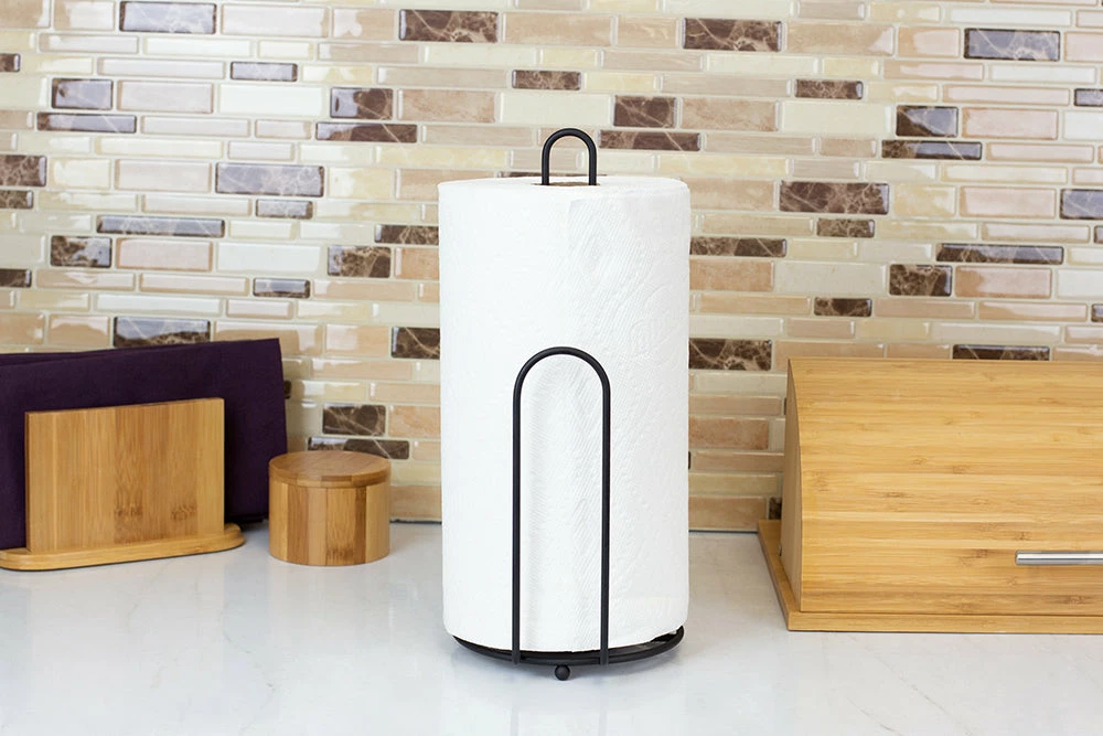 If youβre looking for something simple and functional for everyday use, you may want to consider adding this free-standing paper towel holder to your home. Its lightweight yet sturdy to move around to clean when needed. No need to deal with hard-to-open finials! It features an open arm design with a tearing arm to unroll just the right amount without having to take the roll off the holder. Easily replace a new roll on the arm and lift It out to remove. The holder fits all types of paper towel rolls even jumbo sized! Keep the holder to keep paper towels handy for every day messes. With its subtle rich bronze finish, it also works great as a simple accessory to bring your dΓ©cor together. Match this piece with our bronze coated steel kitchen and bath accessories to lend a regal look to any room in the house.
