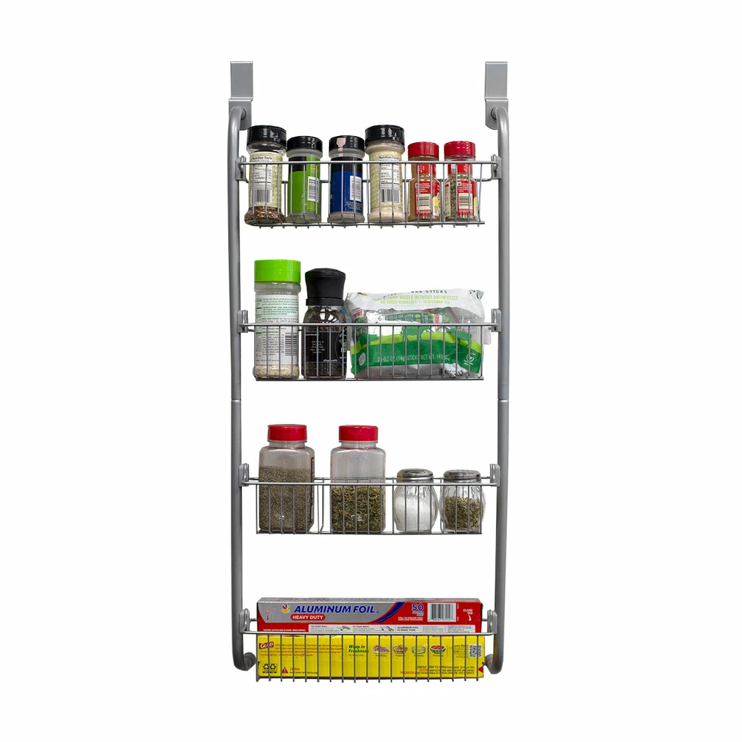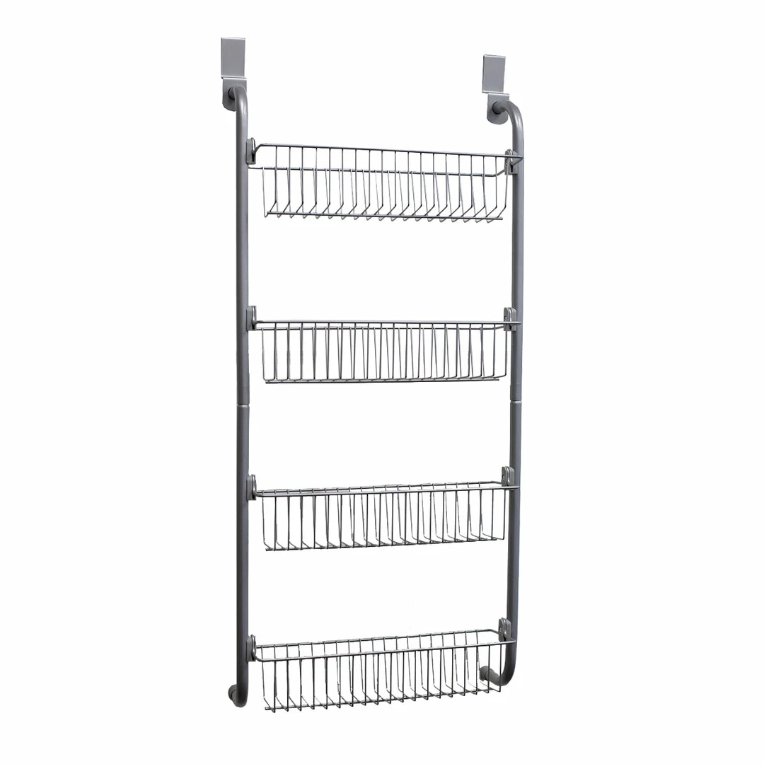 - CUTS THE KITCHEN CLUTTER AND MAXIMIZES SPACE – Great for decluttering the kitchen, this over the door pantry organizer helps keep tabs on your stock of food to make dinner decision so much more simpler. No longer lose cans of food in the depths of a disorderly pantry! Simply line your collection within the narrow baskets to keep them close at hand for your next culinary endeavor. Or use the shelves to organize
