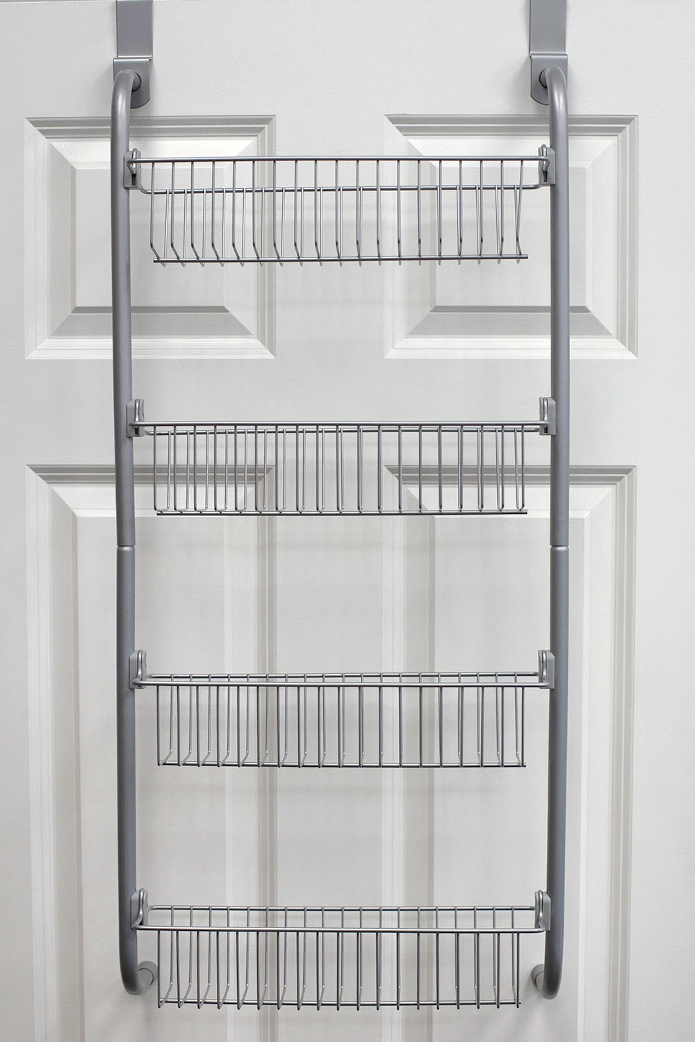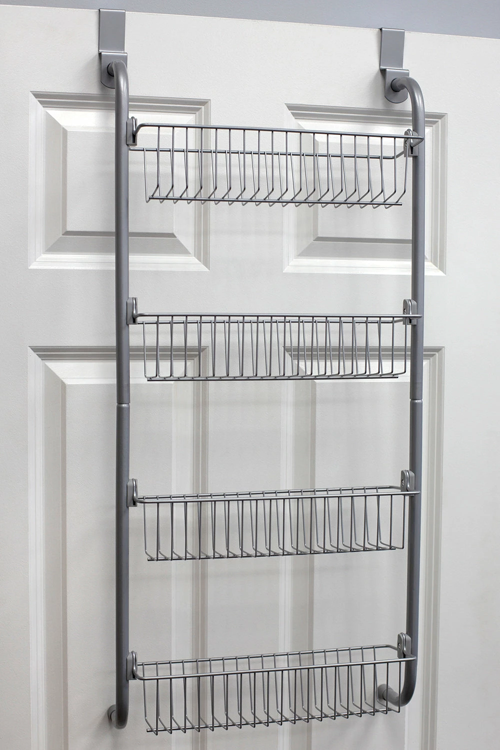 Take charge of your cluttered kitchen storage space and organize your pantry like a pro with this over the door hanging rack. The organizer features 2 deep shelves to provide a wealth of storage for large or bulkier items like packaged flour and folded linen, while the low profile baskets are great for smaller items like canned food. With its varying sized shelves, easily categorized or group similar items together to get what you need instantly. Each shelf features an open grid design to provide ventilation to keep your pantry staples super fresh.