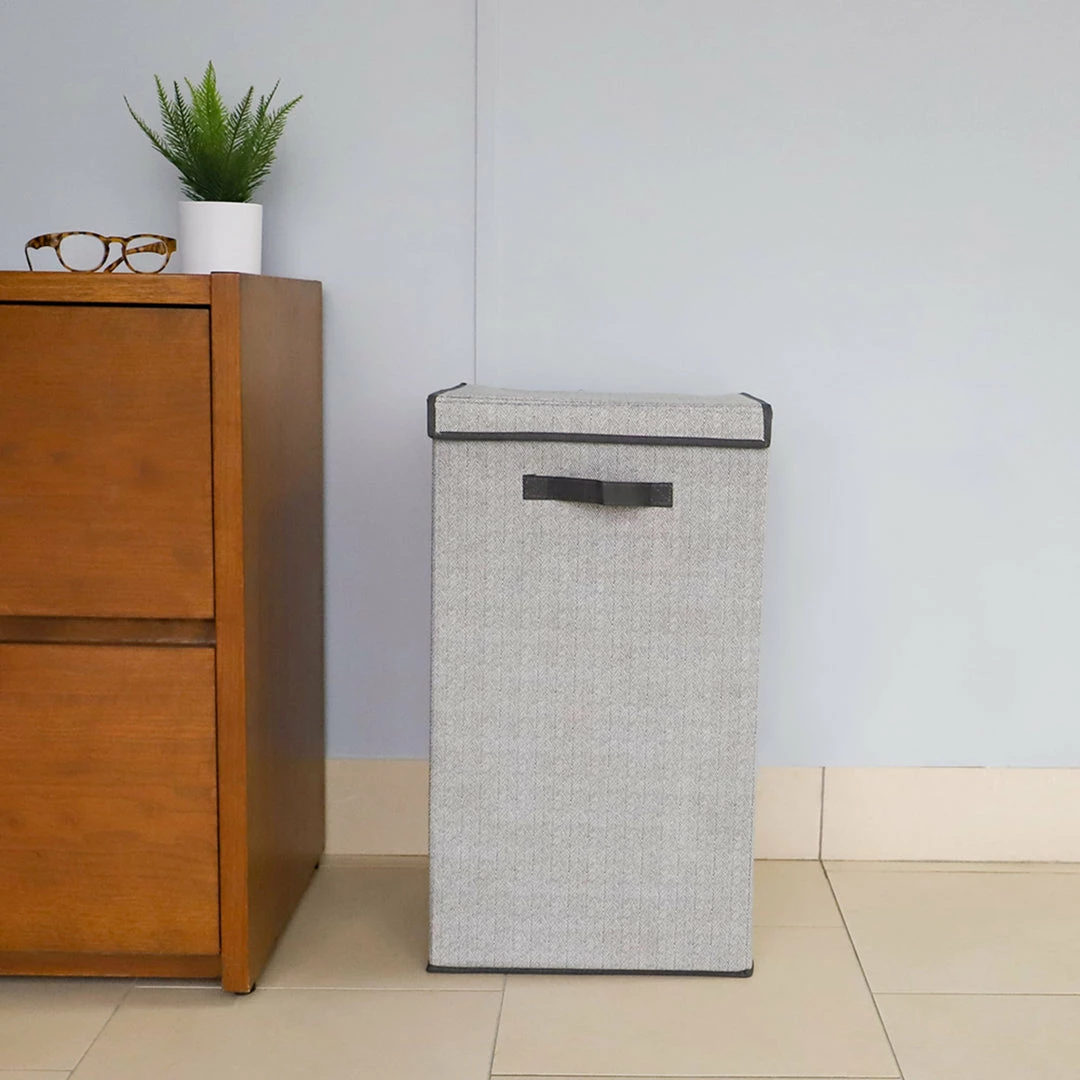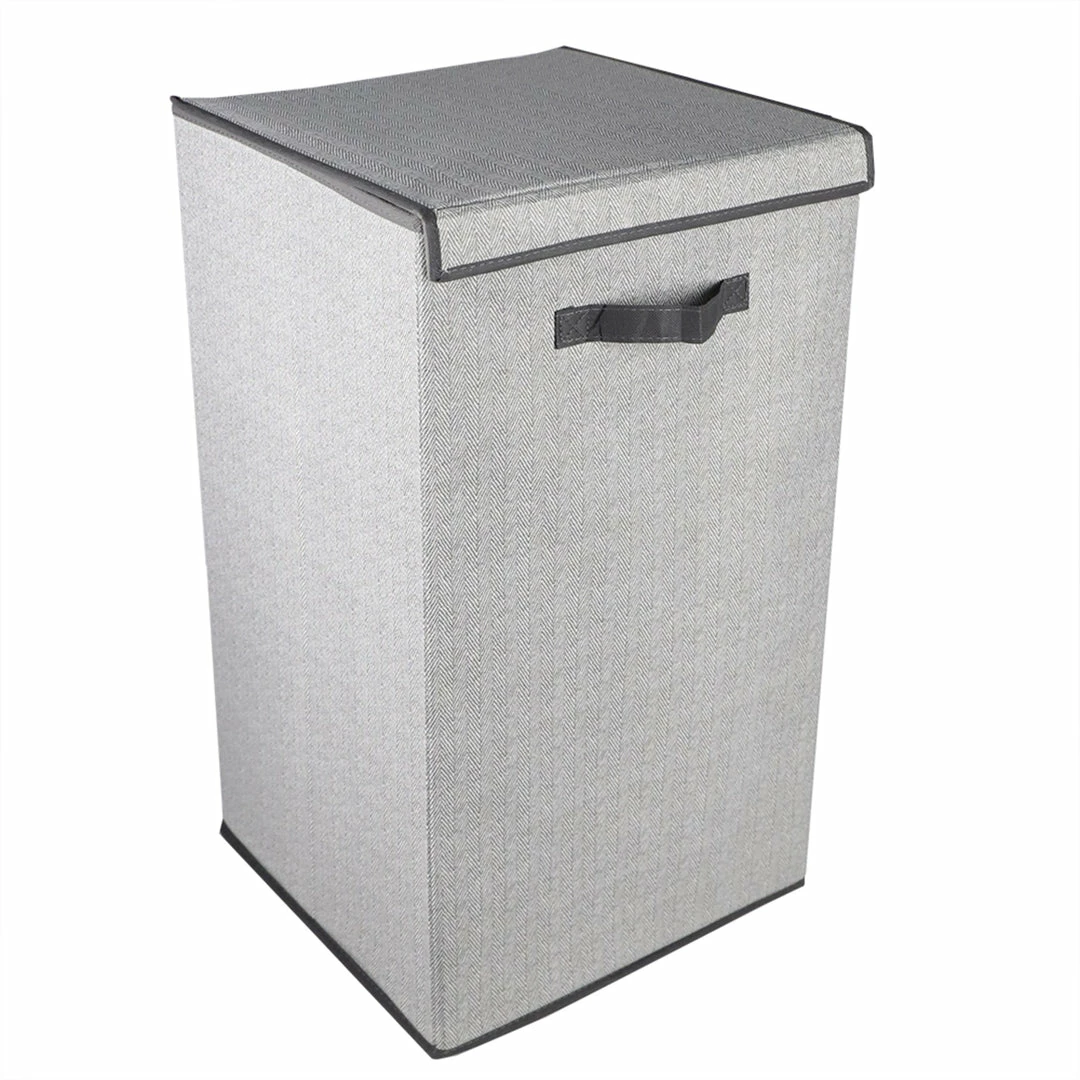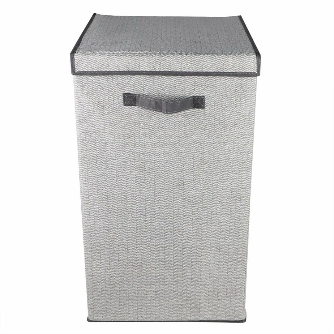 Keep your laundry load off the floor and neatly stored in this enclosed non-woven laundry hamper. With a premium quality stitched nylon handle you can bring the hamper to and from the wash as needed. The interior accommodates a large single load and the exterior features an elegant herringbone pattern. Spot clean.