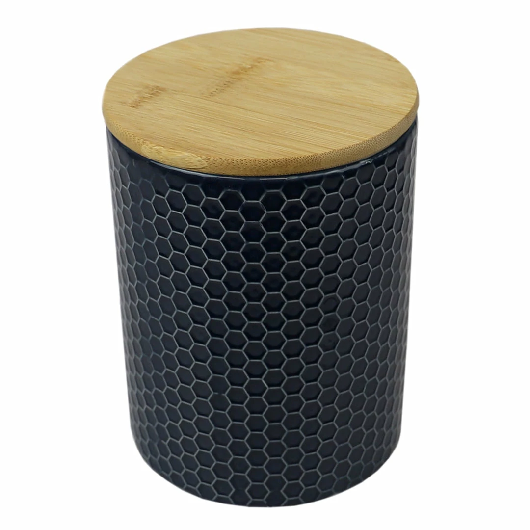 From pasta, flour, and spices to tea and coffee keep all your favorite pantry staples fresh and flavorful with this honeycomb patterned ceramic canister with bamboo lid. The raised honey comb design adds a touch of texture while its smooth finish makes it easy to wipe clean. The silicone ring keeps air out, creating an air-tight environment to keep contents dry and free insects. A must-have for any kitchen, it matches any type of interior décor. Hand wash.