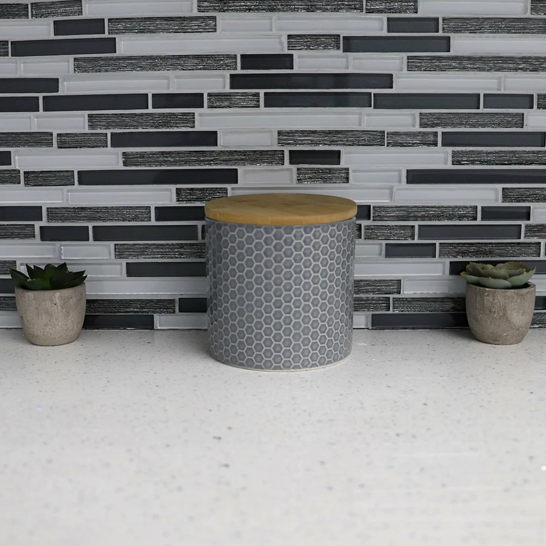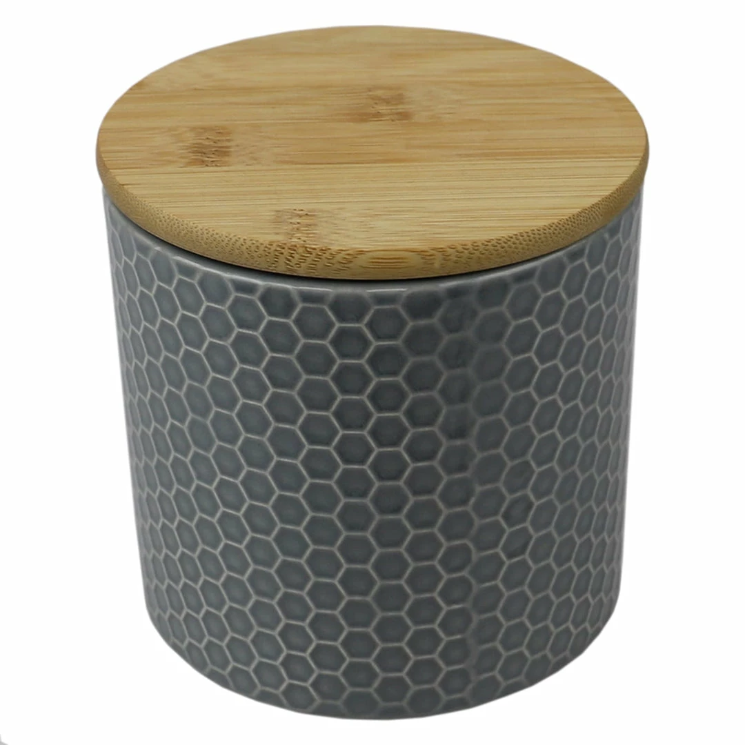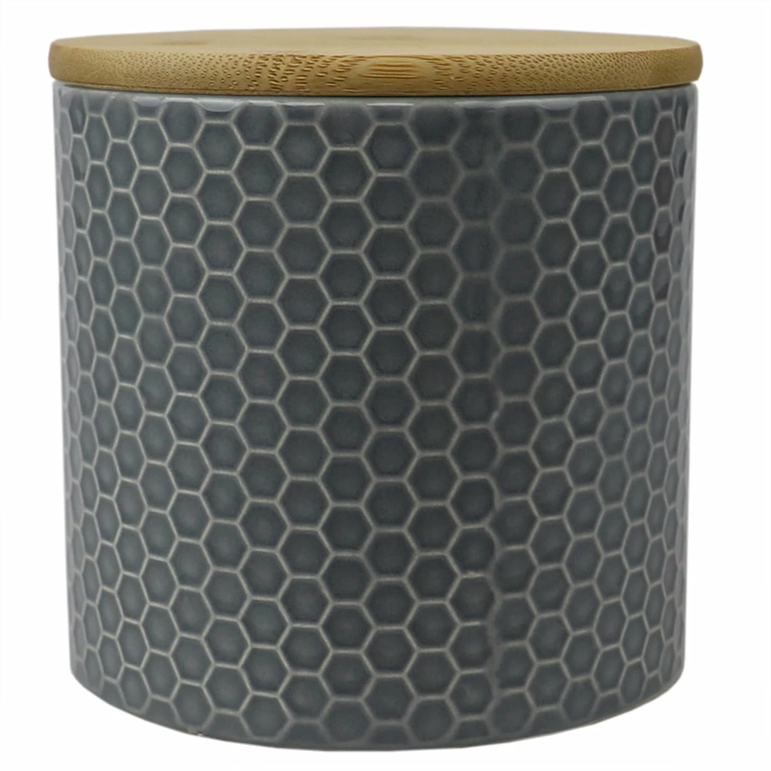From pasta, flour, and spices to tea and coffee keep all your favorite pantry staples fresh and flavorful with this honeycomb patterned ceramic canister with bamboo lid. The raised honey comb design adds a touch of texture while its smooth finish makes it easy to wipe clean. The silicone ring keeps air out, creating an air-tight environment to keep contents dry and free insects. A must-have for any kitchen, it matches any type of interior décor. Hand wash.