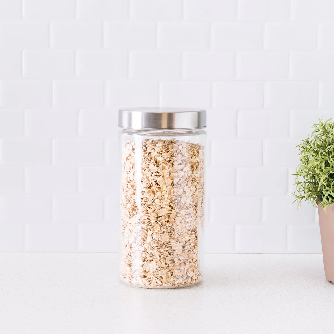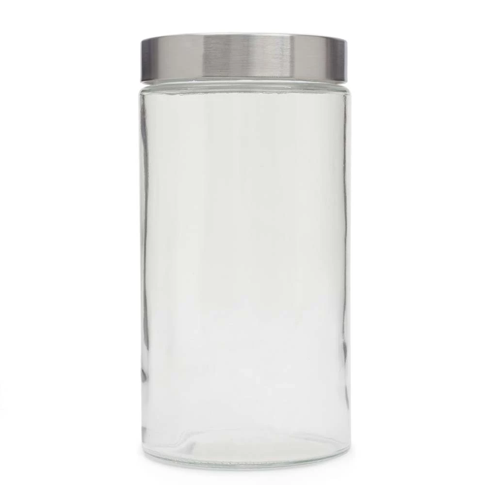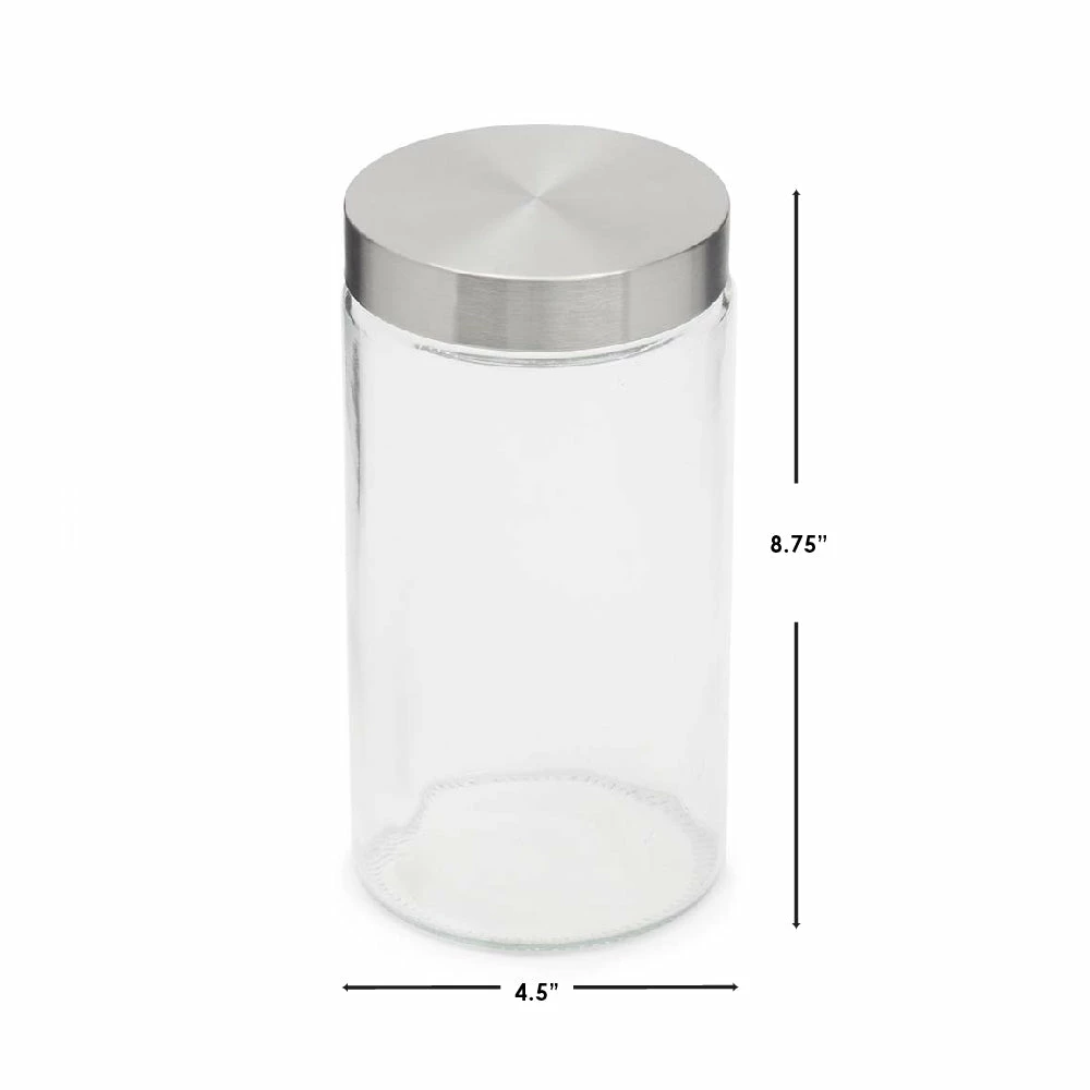 If you want to ensure the longevity and freshness of your coffee beans and grinds, rice, sugar, flour, pasta, consider adding this contemporary round shaped glass canister with stainless steel lid. This nifty storage container features a heavy duty glass base with a clear finish, so you’ll never have to guess when it’s time for a refill. The brushed stainless steel lid offers an air-tight seal locking in all the freshness and flavor within its sturdy structure. While perfect for organizing the pantry, you can use this versatile jar in other areas of the house and for decorative purposes. Use it in the bathroom to corral your collection of cosmetics and accessories. Keep one in the utility closet to store gadgets, tools, and office supplies. You can easily transform this empty jar into a chic decorative piece for any party, by filling it with bite sized candy and other fun treats. For a countertop worthy canister this one is a must!