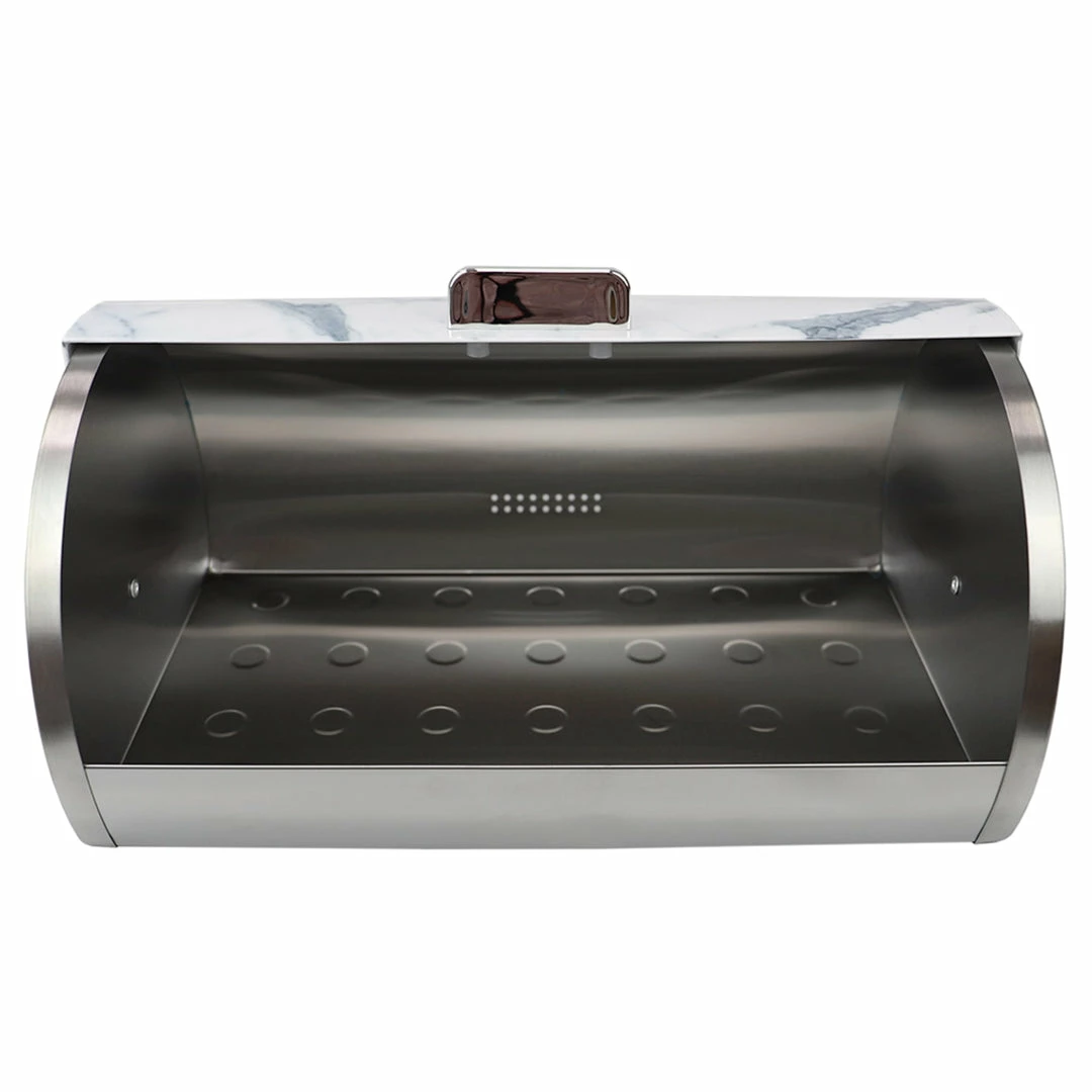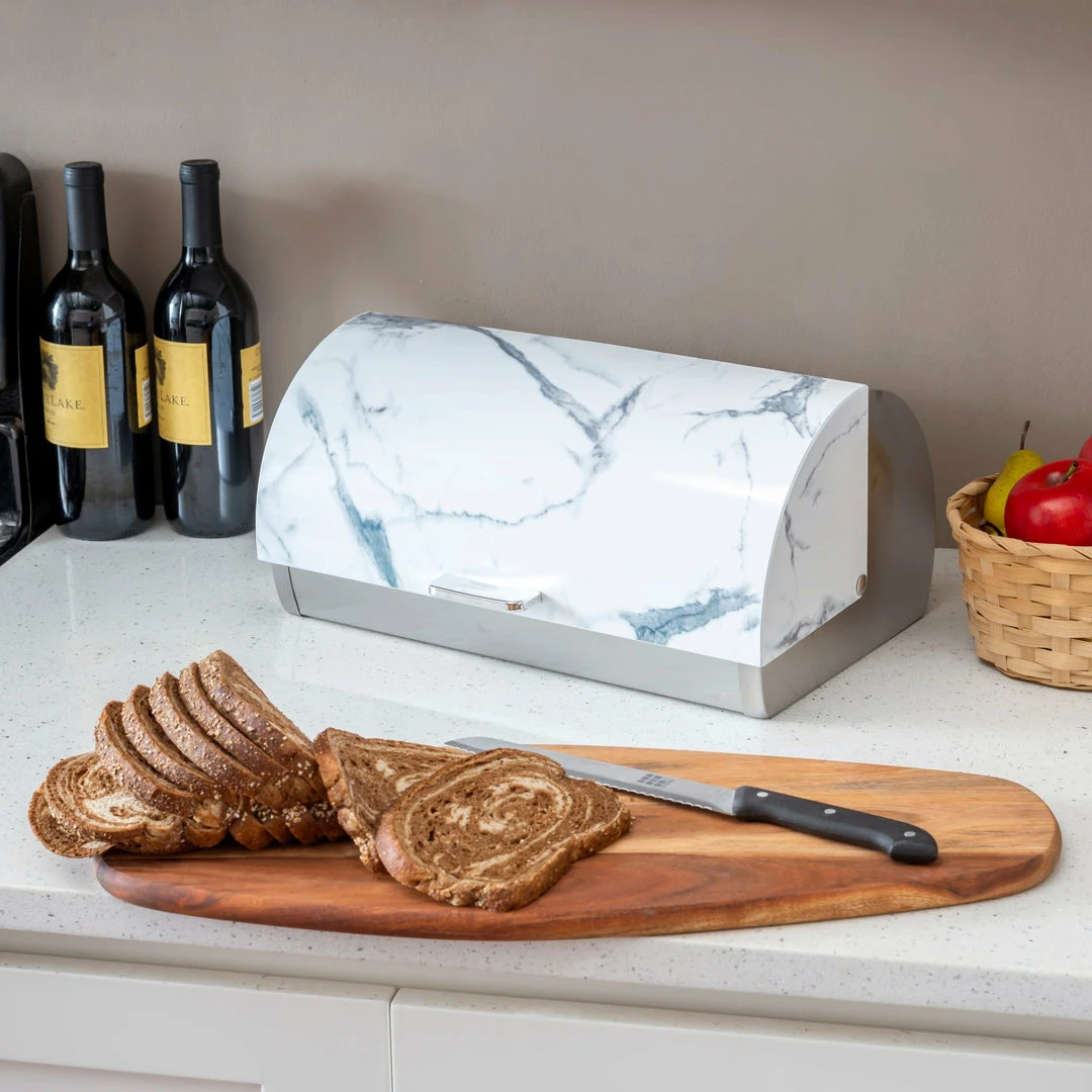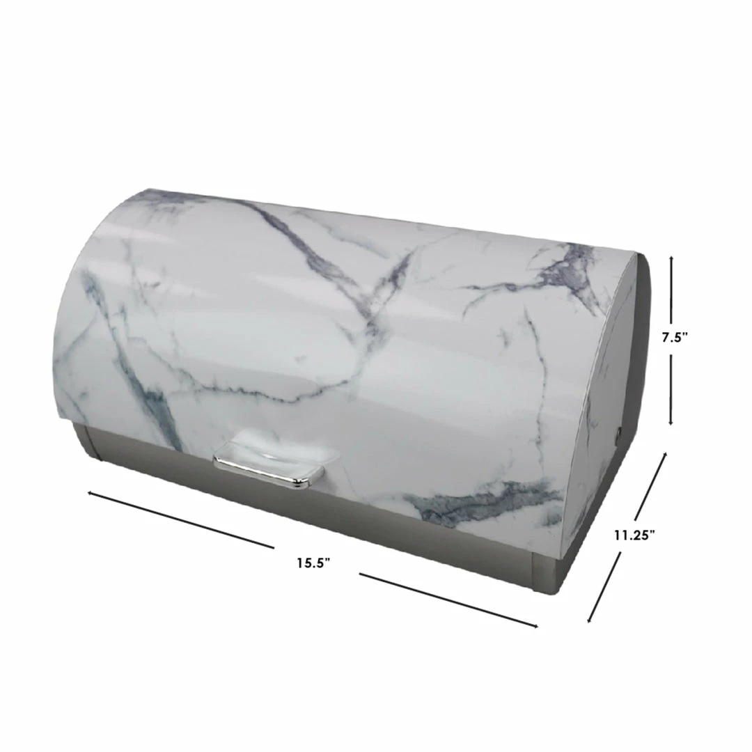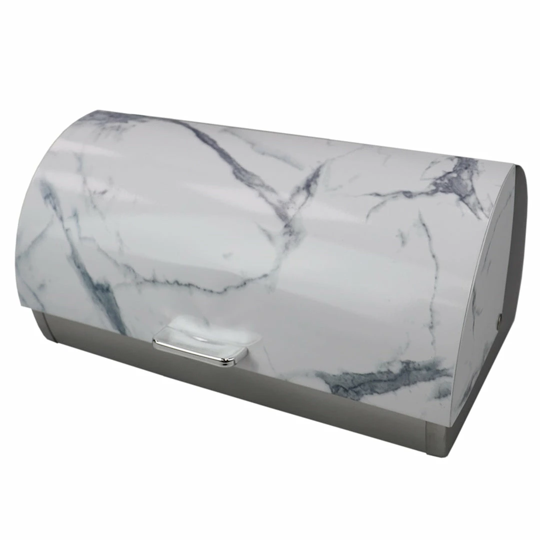 With its generous capacity, fit a large loaf of bread with room to spare for other tasty treats. The convenient roll up lid ensures the bread bin doesnβt take up precious counter space while in use. And the beautiful marble-like design brings an elegant touch to the kitchen. Made of high quality steel, itβs built to handle the demands of a busy kitchen. Hand wash.