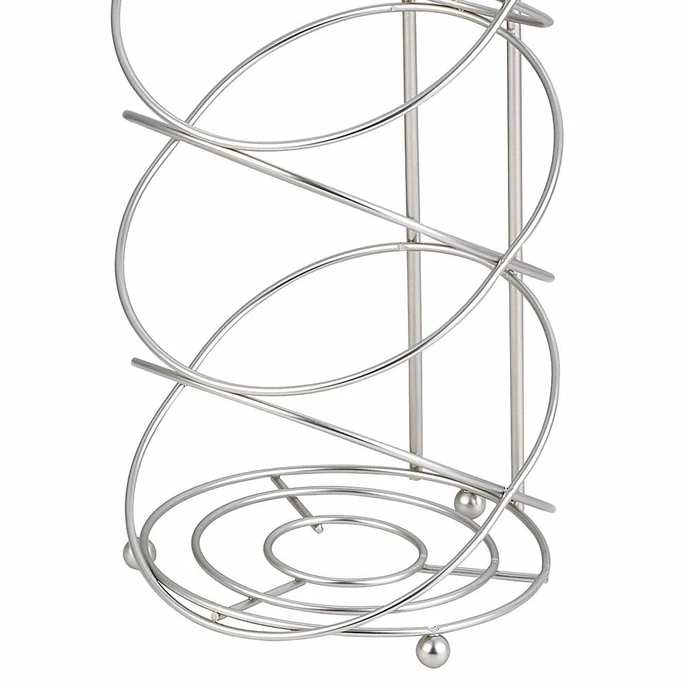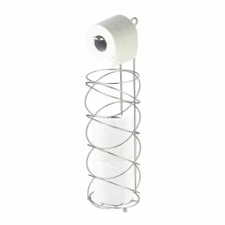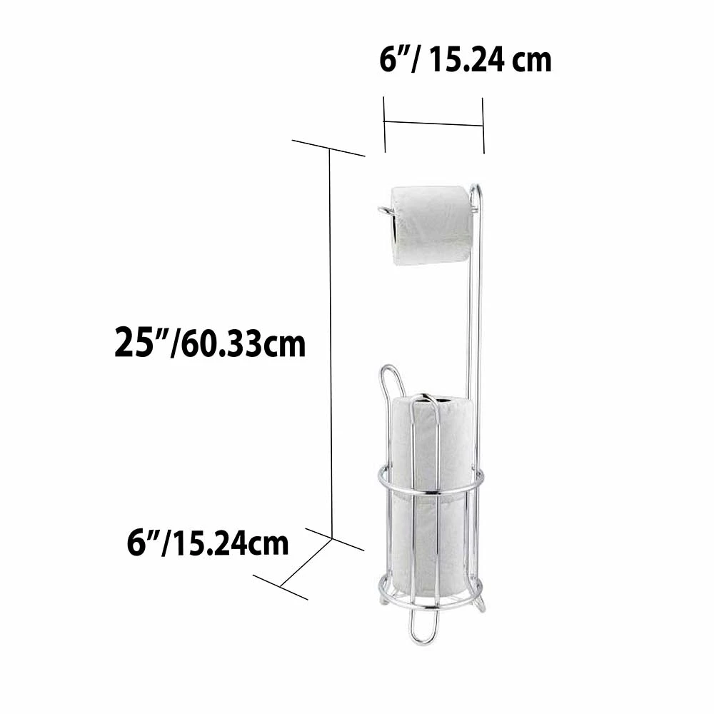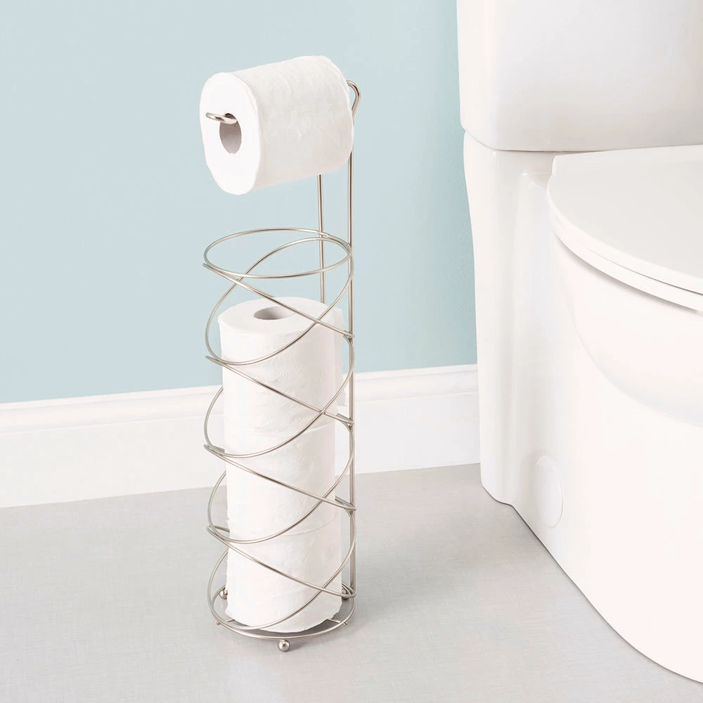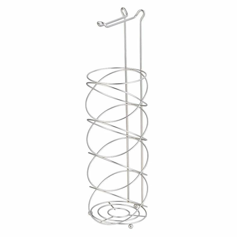 - STURDY MATERIAL AND ELEGANT DESIGN – The sturdy base helps to keep it from tipping, with 4 elevated feet to help keep your toilet paper clean and off the floor. It is made of steel, with a chrome-plated finish that adds brightness and shine. The spiral design also adds a fashionably modern touch to your bathroom.