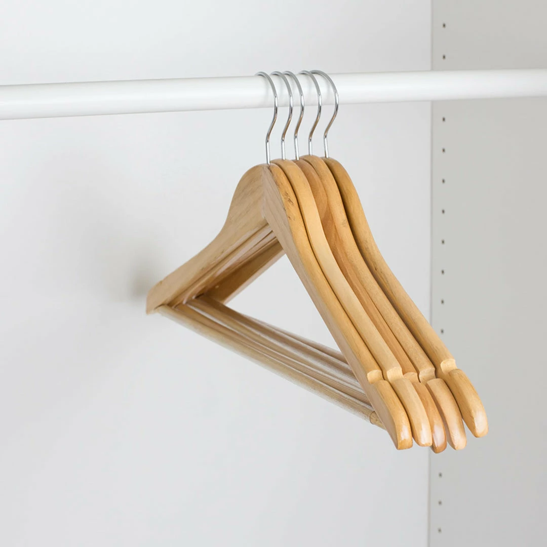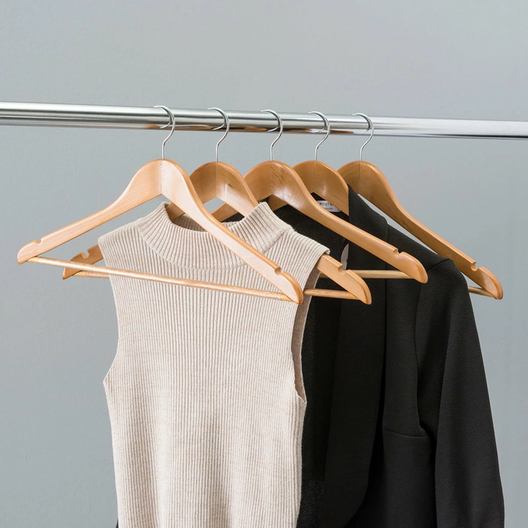 - DESIGNED TO LOVE AND LAST – Made of solid wood, the hanger offers a smooth-to-the touch feel with no jagged, cracking or rough spots and splintering. These hangers not only preserve the quality of your wardrobe but also add a refreshingly, distinguished look for whatever piece of clothing you’re wearing, whether it’s a casual Tee or business formal polo. Instantly glam up an disorderly and ordinary closet into luxurious