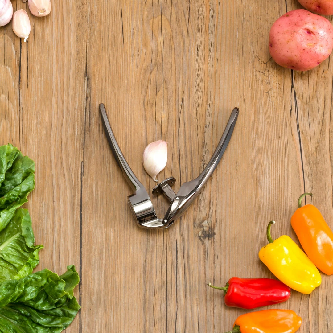 - Spacious chamber allows you to effortlessly press a large bulb of garlic, while the evenly patterned perforations extracts more uniform pieces.