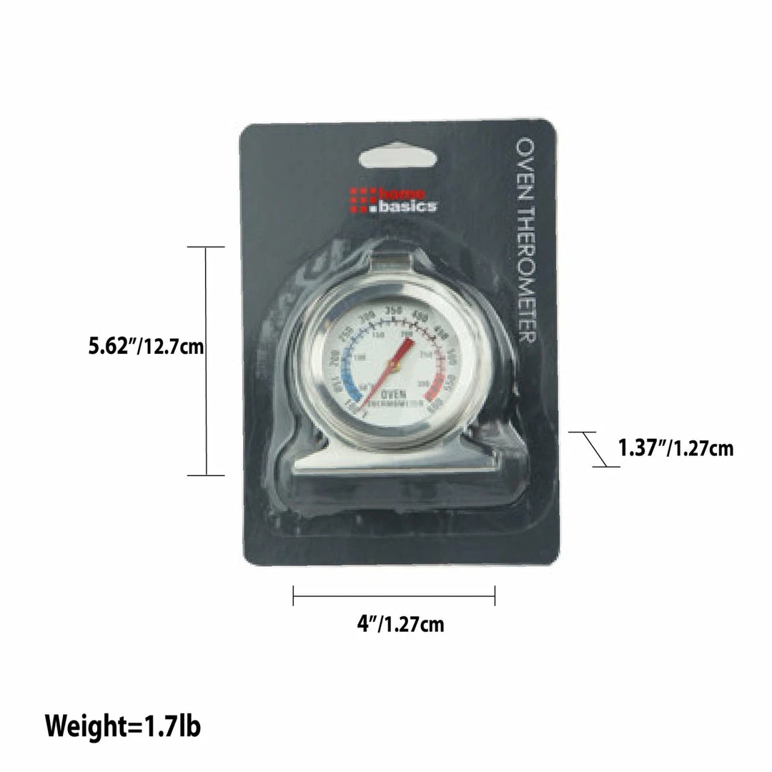 Easily monitor the temperature of your food with this Home Basics Oven Thermometer. The thermometer features a bright display with blue and red dial graphics for exceptional clarity. It can also easily hang when not in use or stand on its own.