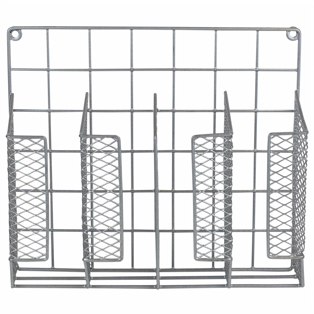 Need a solution for your storage and pantryware dilemma? From foil, parchment paper, and sandwich bags this vinyl coated steel organizer keeps them all in one, organized spot. 4 compartments are positioned vertically making it easy to see and grab what you need. Clip it onto an interior cabinet door, and enjoy gaining that precious countertop space back.