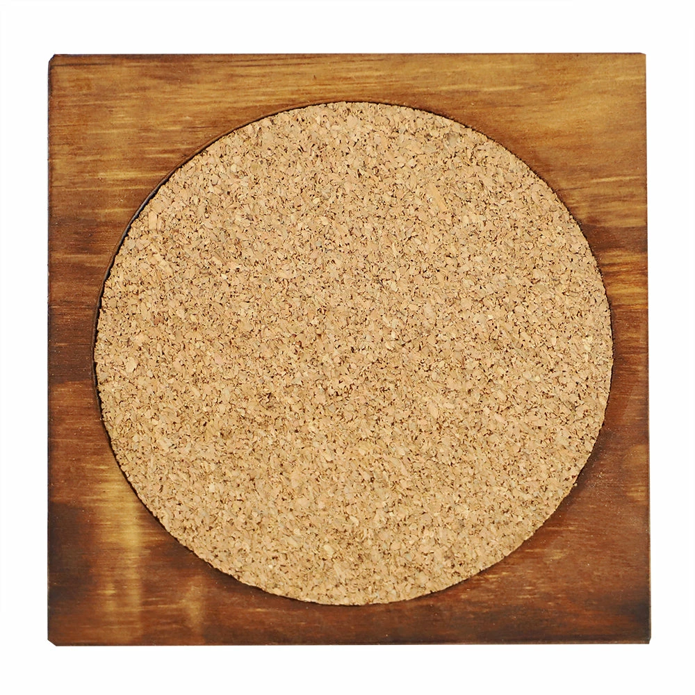 - Beautifully defined with a rustic wood frame and crafted with an absorbent cork insert