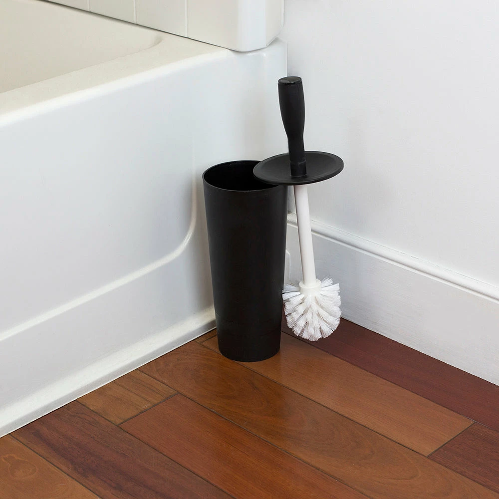 Timeless form with impeccable function, this classic toilet brush holder set makes an ordinary and bathroom cleaning tool into a decorative bath accessory. The tapered brush head is equipped with stiff bristles, that gently swipe dirt and grime in and around the toilet bowl. When placed in the container, the brush is completely hidden for elegant storage. The sleek profile of this toilet brush canister makes it perfect if you reside in tight quarters such as small apartments, condos or dorm rooms.