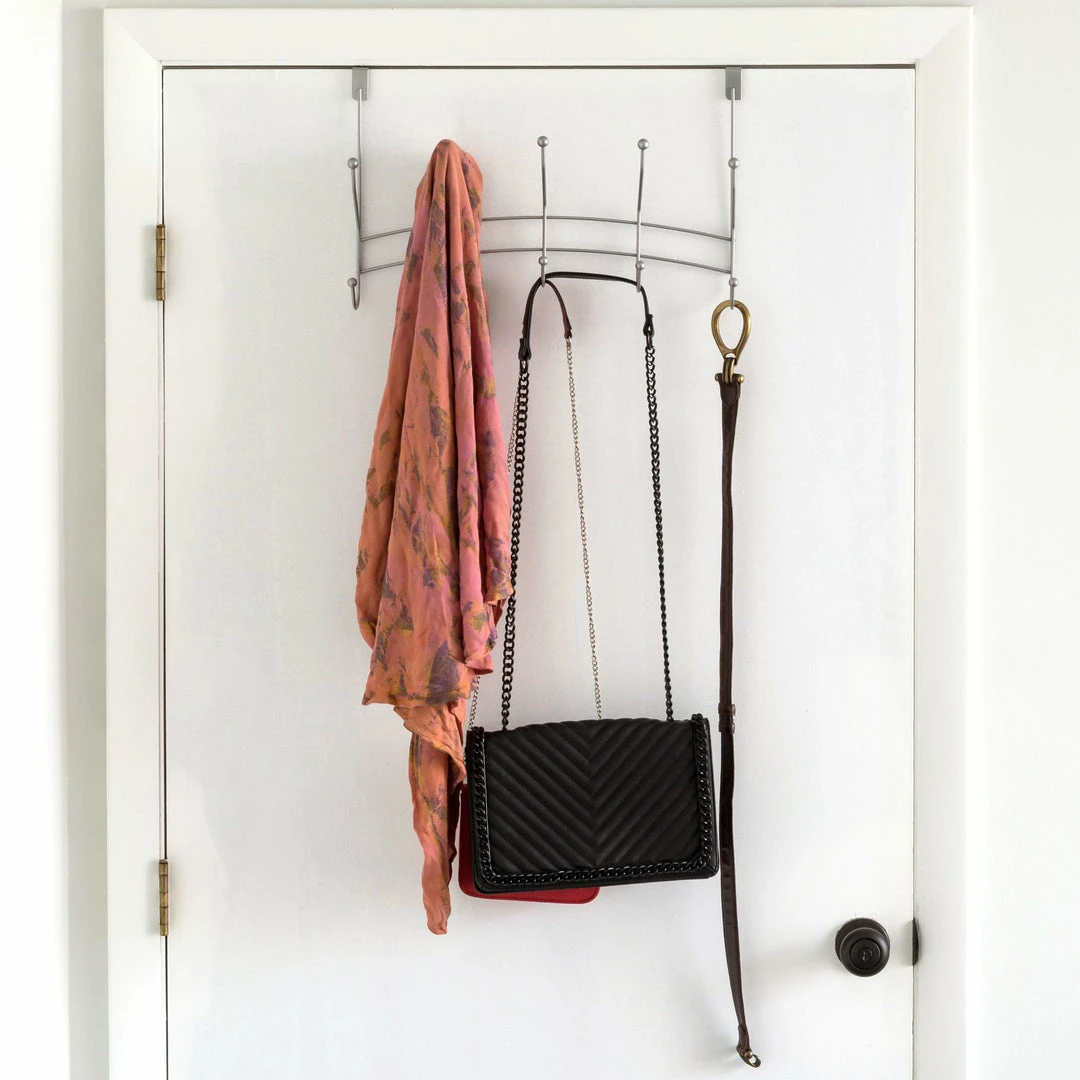 With zero tools required to install simply slide it over an interior door to get instant storage space You can use each of the five hooks to stage out an entire outfit. Place it in the entryway to use as a drop zone for your guest’s coats. Hang it over the bathroom door to keep your bath towels handy. Fits most standard interior doors.