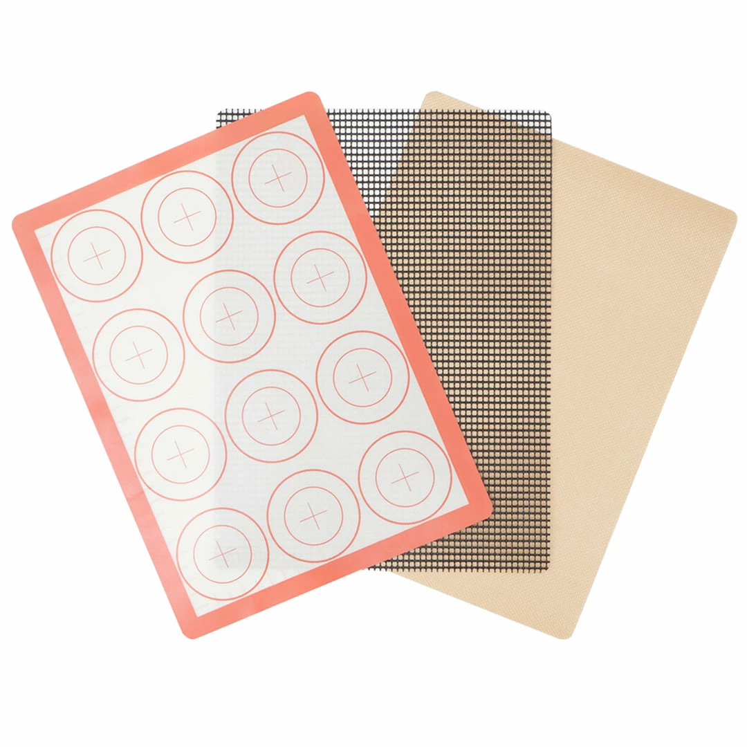 Minimize the mess when baking with the help of this baking sheet. This baking mat helps keep food from clinging to a sheet pan. It helps distribute heat evenly. A must have for all bakers. Bake like a pro. Perfect to use when baking cookies and pastries. The mat can be placed directly on a countertop to knead or roll out dough. Gift to friends and family as the perfect housewarming gift. Hand wash with warm water and use gentle soap. Dry thoroughly. Item dimensions may differ slightly due to the unique nature of the product. Color and finish may also differ from the images shown due to differences in monitor displays. Props and accessories are not included.
