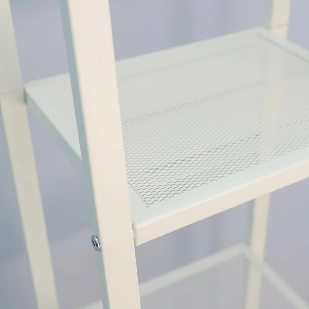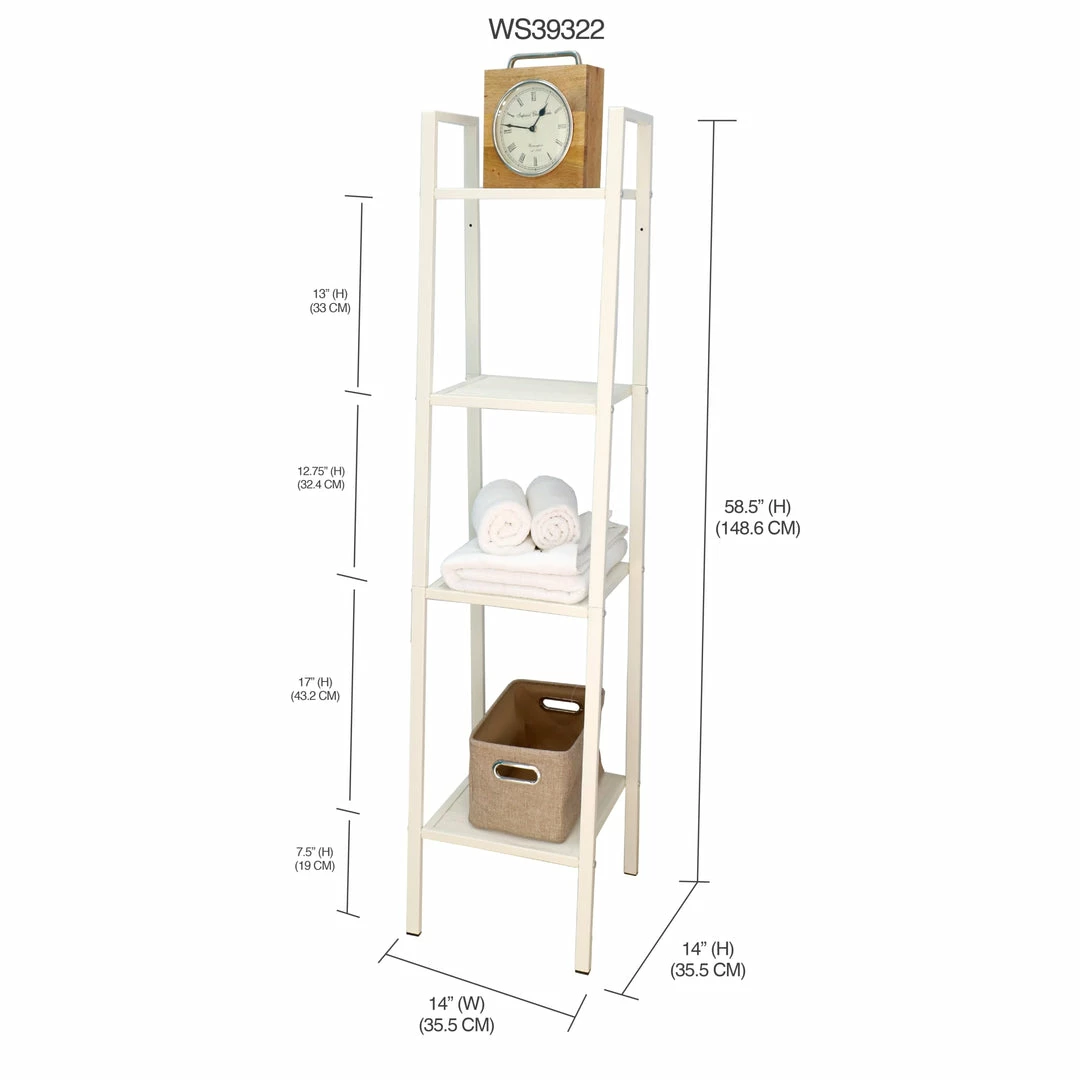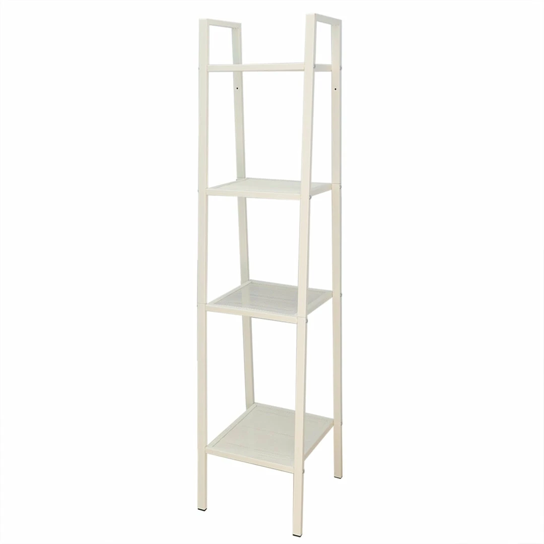 Defined by a simple design, this freestanding metal rack brings convenient compact storage in small spaces while providing ample space for all your belongings. Use as a storage rack for housing toiletries, books, plants. The total weight capacity for the entire unit is 61 pounds. The top shelf can hold 6 pounds/3 kilograms, the second 11 pounds/5 kilograms, while the last two shelves hold up to 22 pounds/10 kilograms. Item dimensions may differ slightly due to the unique nature of the product. Color and finish may also differ from the images shown due to differences in monitor displays. Props and accessories are not included.