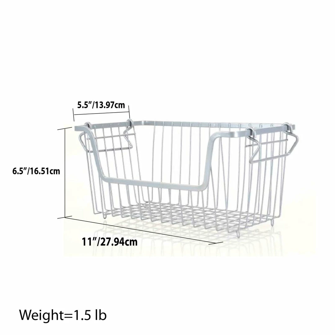 A versatile storage solution to combat the clutter indoors and out. Use this multi-functional wire storage basket anywhere in the house to keep your day-to-day essentials neatly stored away. Display it in your kitchen cupboard or pantry to keep all your kitchen staples such as soup cans, cleaning supplies, and more readily accessible and organized. Use it in the laundry room or closet to stow away towels, wash cloths and folded apparel. Or put in the garage to keep home and garden tools, hardware, extension cords to ensure your items are neatly contained. With its grid-like design and scooped opening along the face of the basket all the contents are within reach and easily visible when you need it!