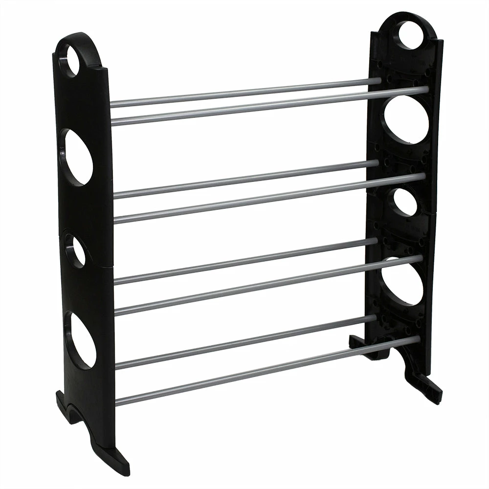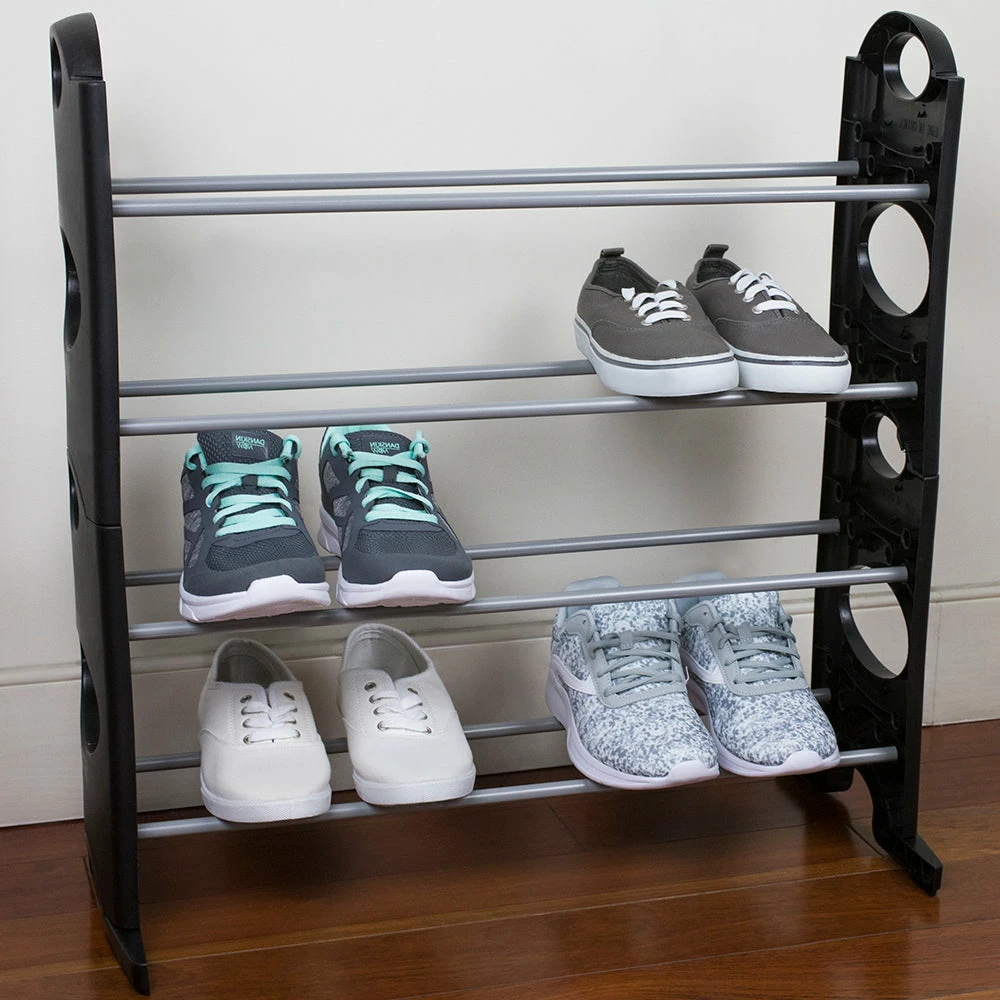 - 4 tier shoe rack stores up to 12 pairs of shoes; Great for adult shoes, kidโs shoes, womenโs shoes, menโs shoes