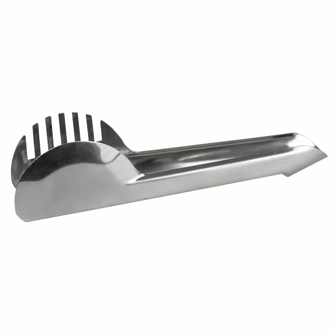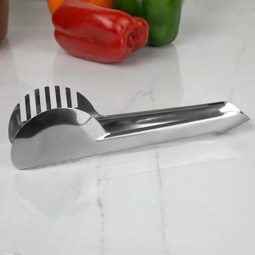 With an elegant and sturdy design these stainless steel tongs make it easy to go from prep to serve in a snap. It features one flat side and one pronged side for easy gripping making it perfect for tossing salad salads and serving slices of meat. These kitchen tongs are also easy to clean! Simply throw it in the dishwasher to clean.