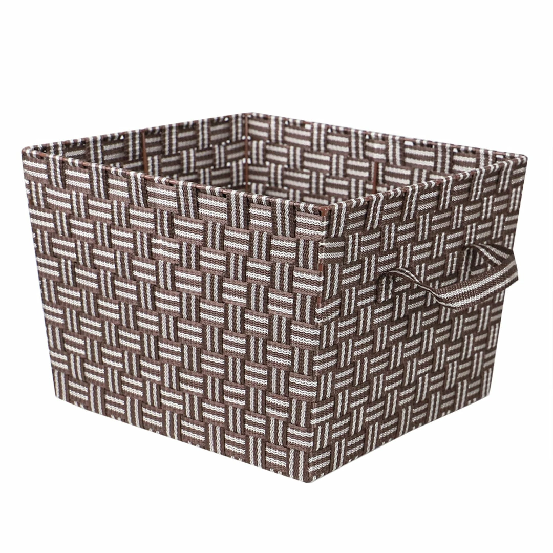 Lightweight and exceptionally strong, it features durable polypropylene strips woven over a strong internal metal frame that help maintain the binβs structure. With integrated handles you can move the bin around as needed. Easily pull out from empty shelf. Or lift from a top shelf. An open top allows you to grab what you need, while the tight, decorative weave keeps the clutter out of the way. In the living room use to corral charging cables and cords, keys, and small electronic devices. Place in the kids room to tame the unruly toys, arts and crafts, and books. Utilize in the bathroom to organize spare towels and toiletries. Wipe the surface clean to keep it looking its best. Item dimensions may differ slightly due to the unique nature of the product. Color and finish may also differ from the images shown due to differences in monitor displays. Props and accessories are not included.