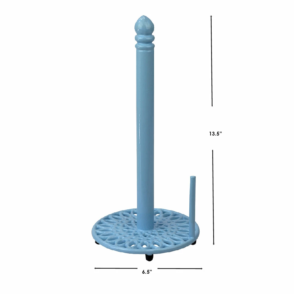 Freshen up your tablesetting with the cheerful patterns of this free-standing floral Paper Towel Holder. Crafted from heavy duty cast iron, the weighted structure makes it great for dining al afresco, while the ornate sunflower patterns makes it chic addition to everyday dining. The free-standing design makes it easy to place anywhere and the side dispensing bar makes it great for tearing an even sheet. (Paper Towel Roll not included).