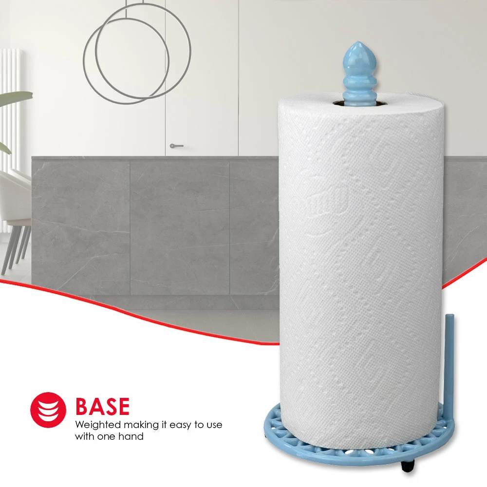 - PULL AND TEAR- The weighted cast iron based along with its non-skid feet allows you to use one hand to rip a single paper towel sheet without it toppling over in the process.