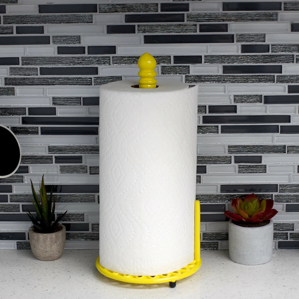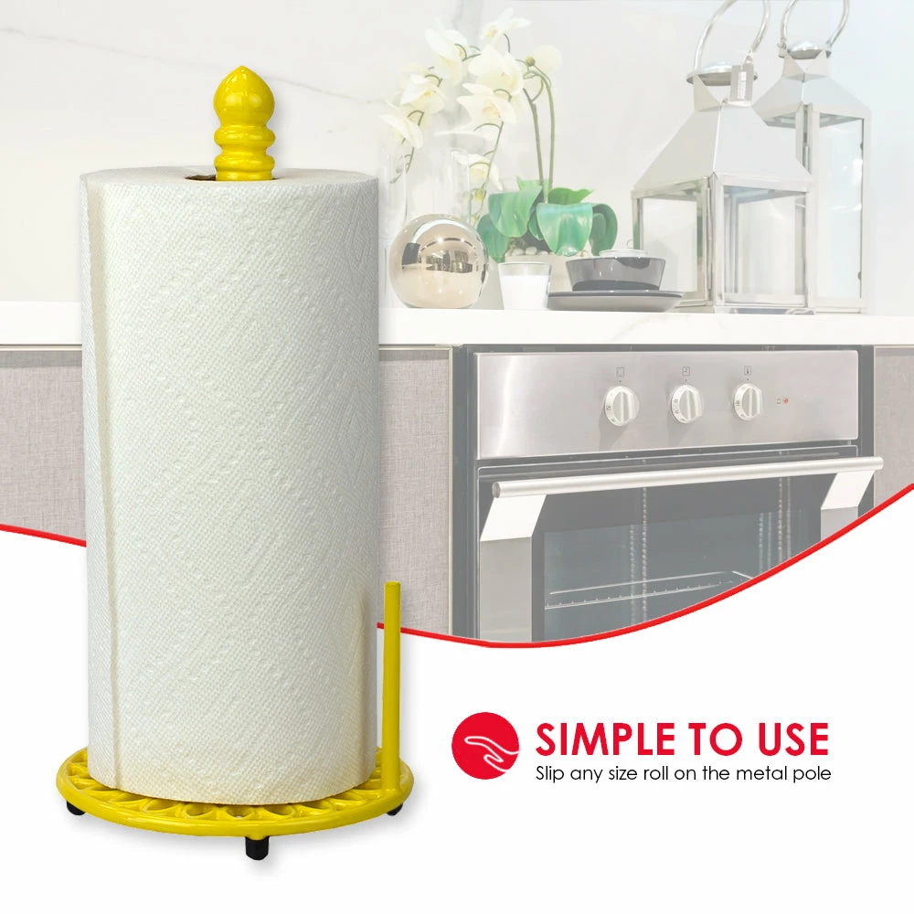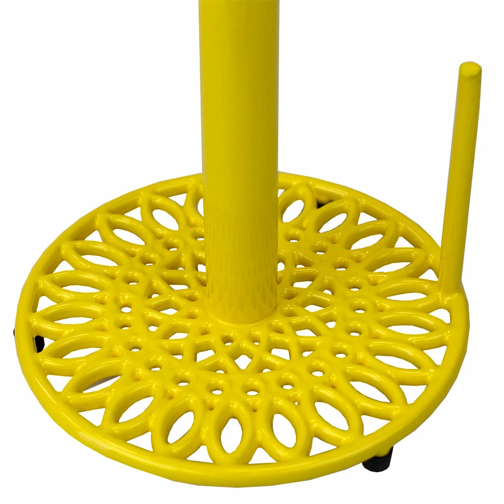 Freshen up your tablesetting with the cheerful patterns of this free-standing floral Paper Towel Holder. Crafted from heavy duty cast iron, the weighted structure makes it great for dining al afresco, while the ornate sunflower patterns makes it chic addition to everyday dining. The free-standing design makes it easy to place anywhere and the side dispensing bar makes it great for tearing an even sheet. (Paper Towel Roll not included).