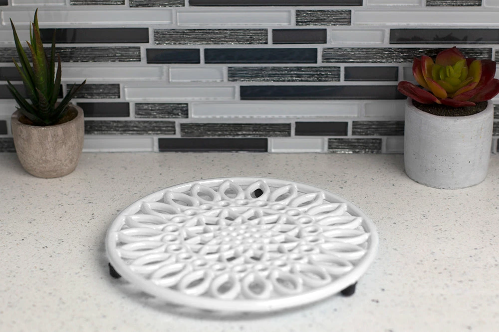- PERFECT FOR KEEPING COUNTERS AND TABLES FREE FROM SCRATCHES AND HEAT – An elegant replacement for those old pot holders and towels, this trivet keeps your counter and dining table safe from scorching hot serving dishes and meals.