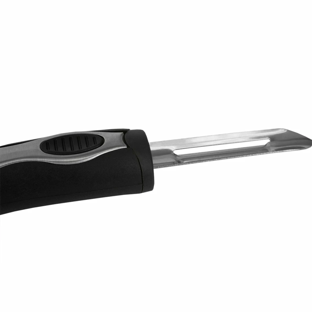 - Soft and textured rubber handle provides a comfortable grasp while repetitive peeling