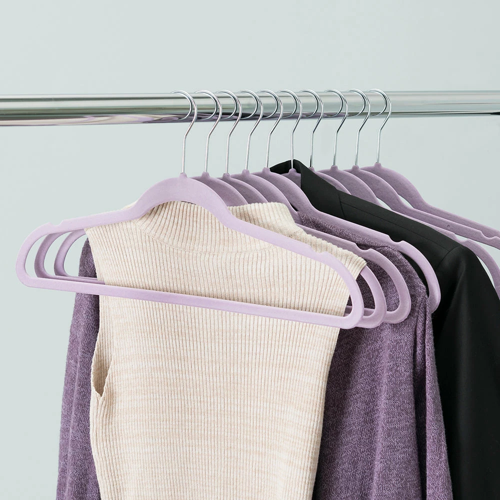 Whether you want to keep that little red dress you wore at the party last night looking as stunning as you are, or that buttoned down polo easily accessible for your 9-5, this lightweight hanger provides the perfect closet storage solution to meet your unique lifestyle. Its soft, non-slip velvet texture offers a luxurious feel while also preventing garments from falling to the ground. The contoured frame features two small evenly spaced space indents on each side of the hanger to ensure your clothing maintains its shape for years to come.