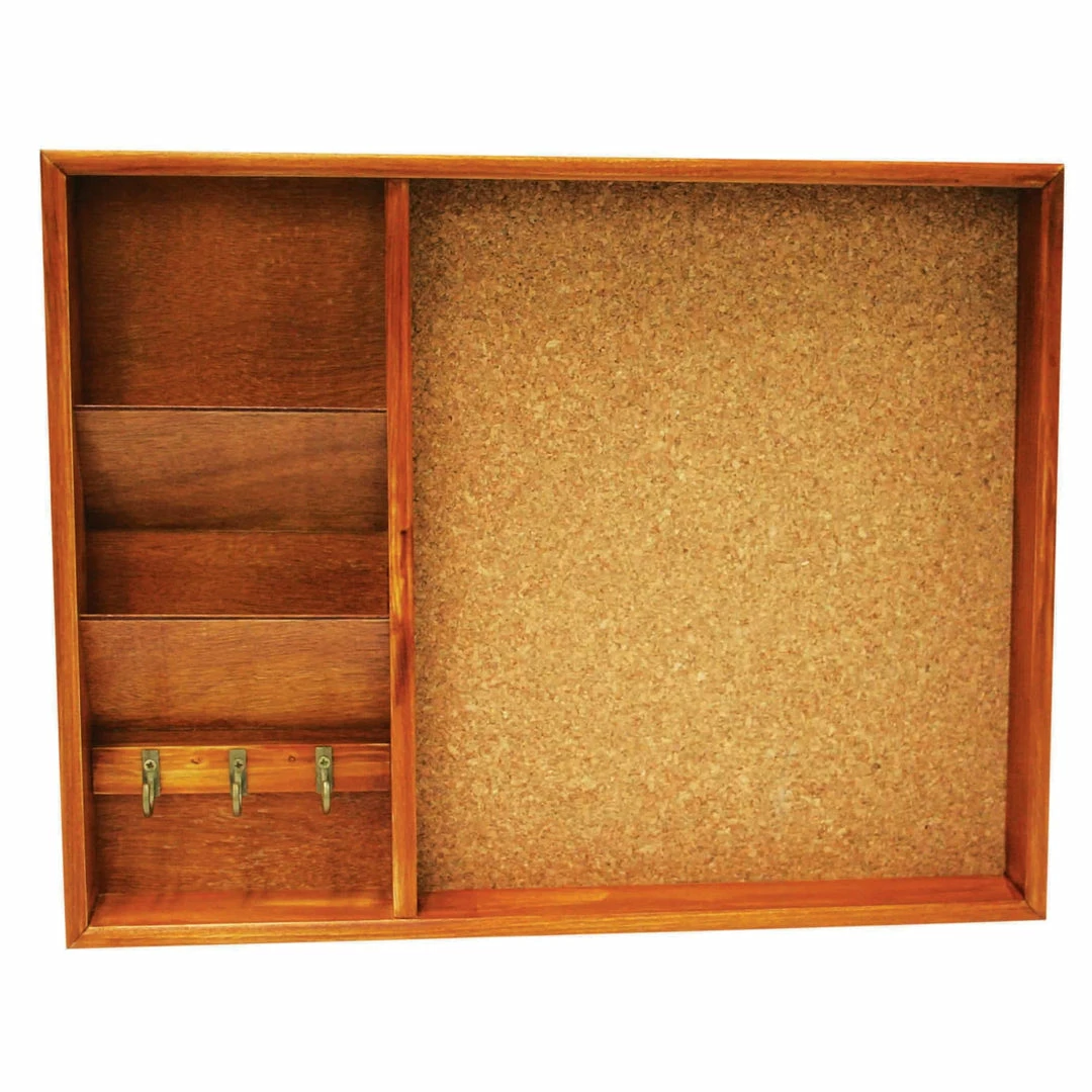 Have you ever found yourself late to work because you misplaced your keys? Have arrived home from work, realizing you forgot to buy eggs and milk to prepare breakfast for the kids? Ensure you have keys readily accessible for tomorrow’s commute to your 9-5 and your grocery list completed with this convenient message center. With a spacious design and cork surface you can easily pin down important memos and daily reminders. The 2 angled compartments allow you to easily tuck away standard mail. 3 gold hooks are place conveniently on the bottom to hold multiple keys. With a wall-mountable design, it’s great to display on an entryway, foyer, office, and more.