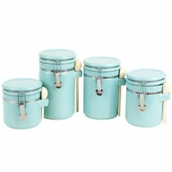 Best reviews of ๐ Home Basics 4 Piece Ceramic Canister Set with Wooden Spoons, Turquoise ๐ฅฐ