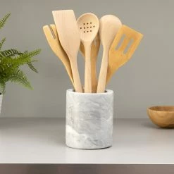 Flash Sale ๐ Home Basics Heavy Duty Large Capacity Compact Marble Utensil Holder, White ๐