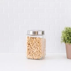 Promo 🤩 Home Basics 56 oz. Square Glass Canister with Brushed Stainless Steel Screw-on Lid Clear ⭐